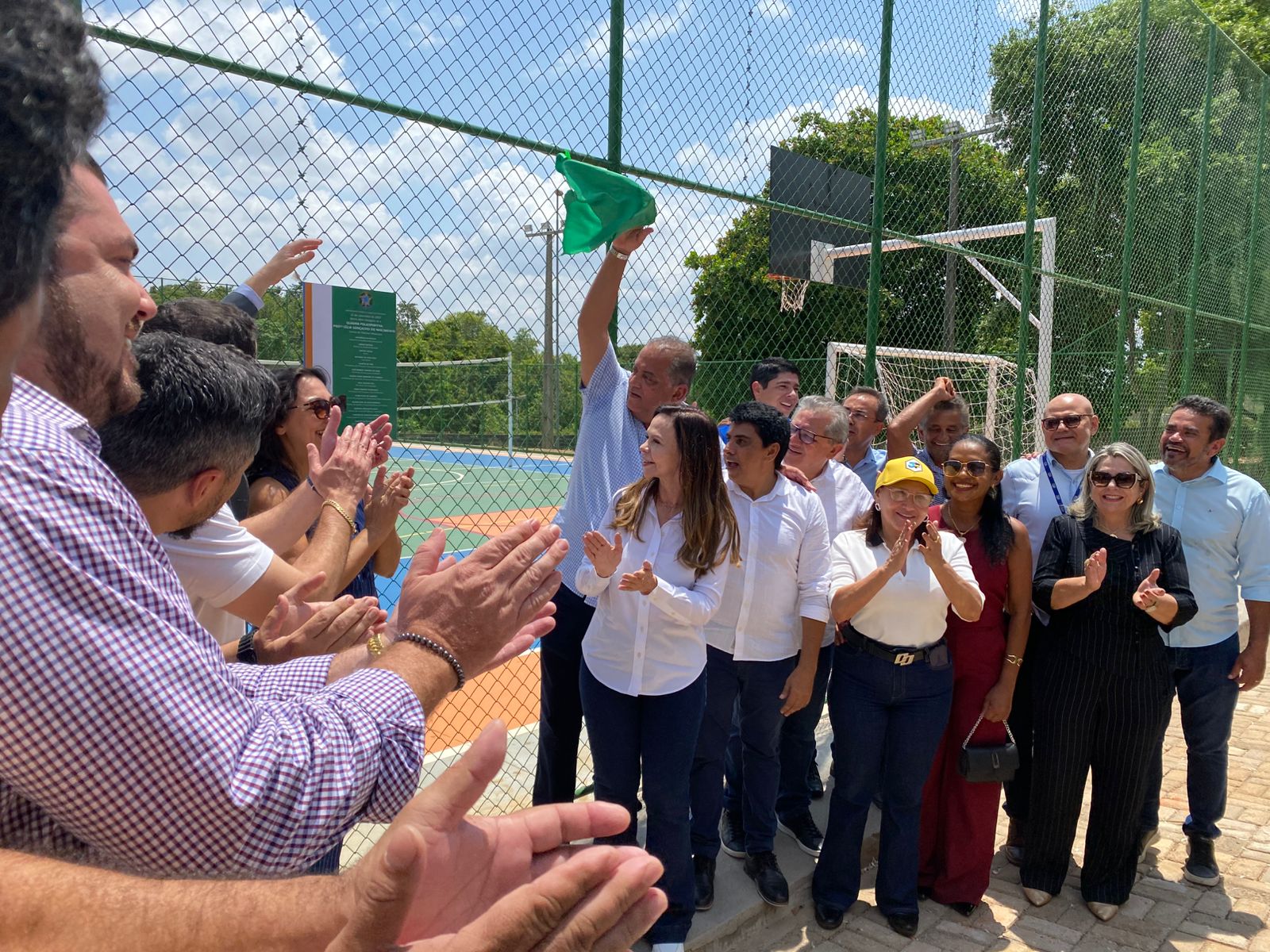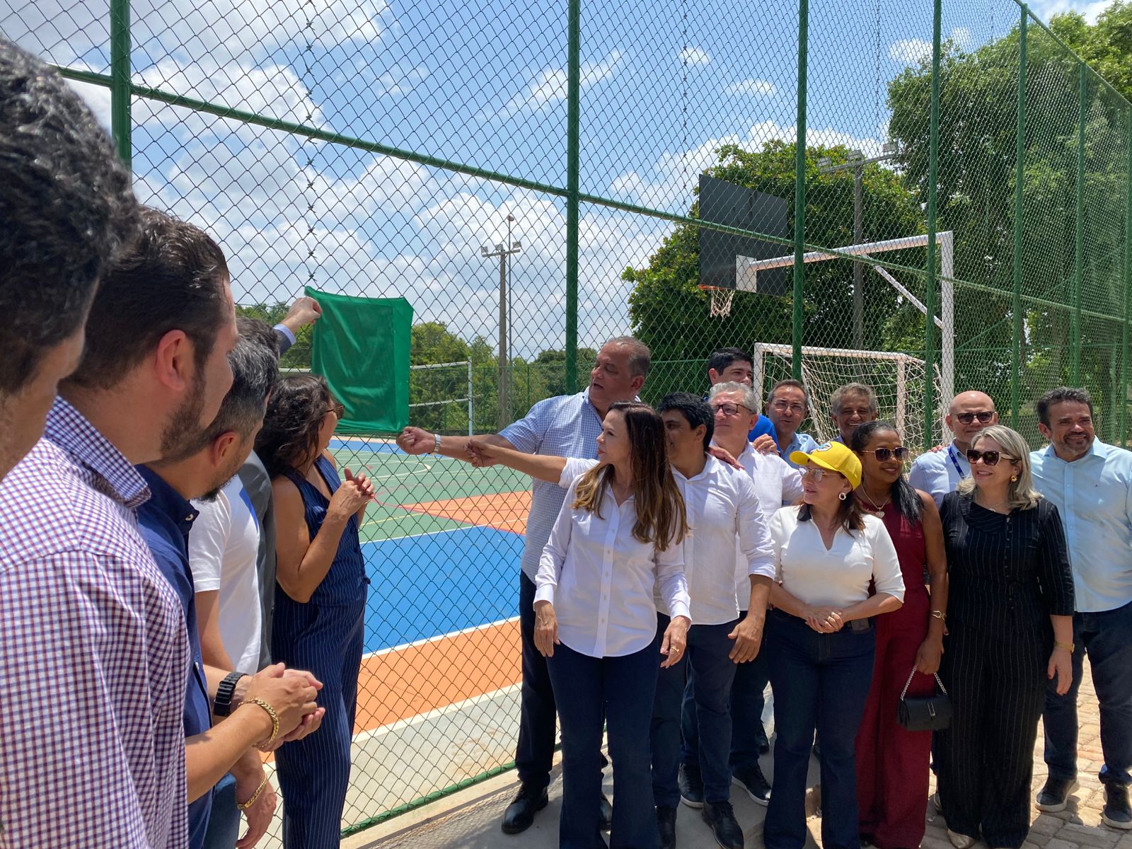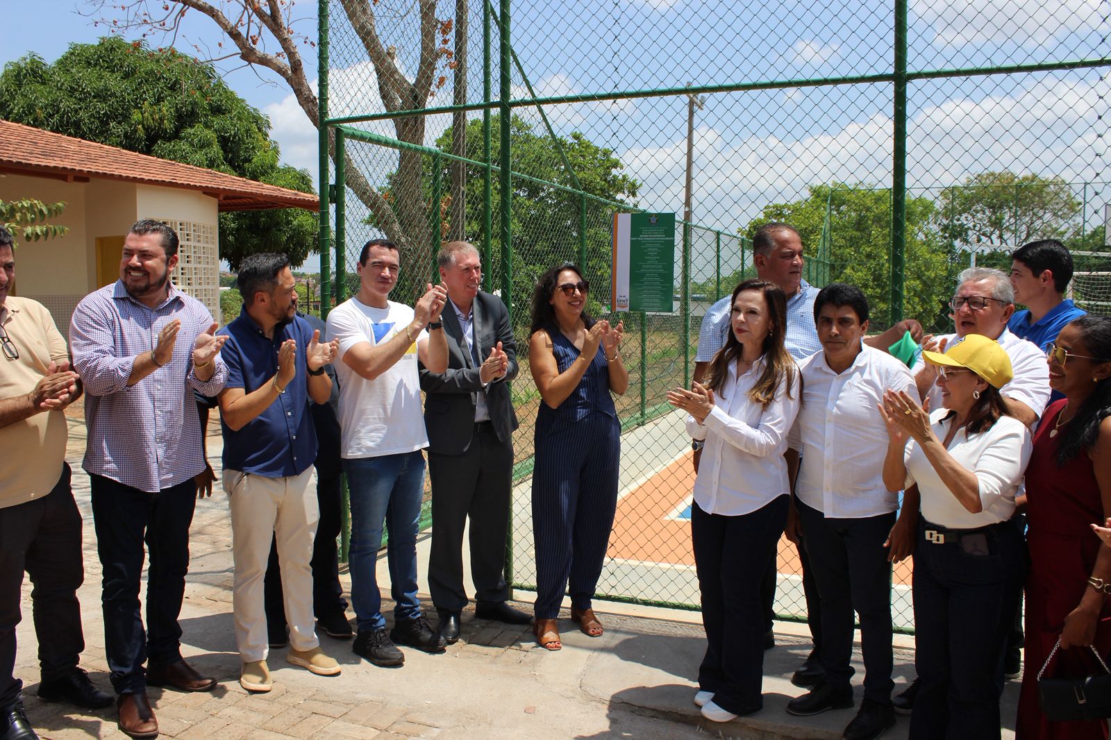Após o encerramento da cerimônia, os presentes foram convidados à quadra para o descerramento da placa de inauguração.