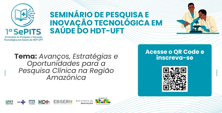 Araguaína (TO) – O Hospital de Doenças Tropicais (HDT-UFT/Ebserh) realiza nos dias 21 e 22 de outubro o 1º Seminário de Pesquisa e Inovação Tecnológica em Saúde (SePITS). O evento terá como tema “Avanços, Estratégias e Oportunidades para a Pesquisa Clínica na Região Amazônica” e reunirá pesquisadores, profissionais de saúde, estudantes e gestores para debater perspectivas e desafios da área.