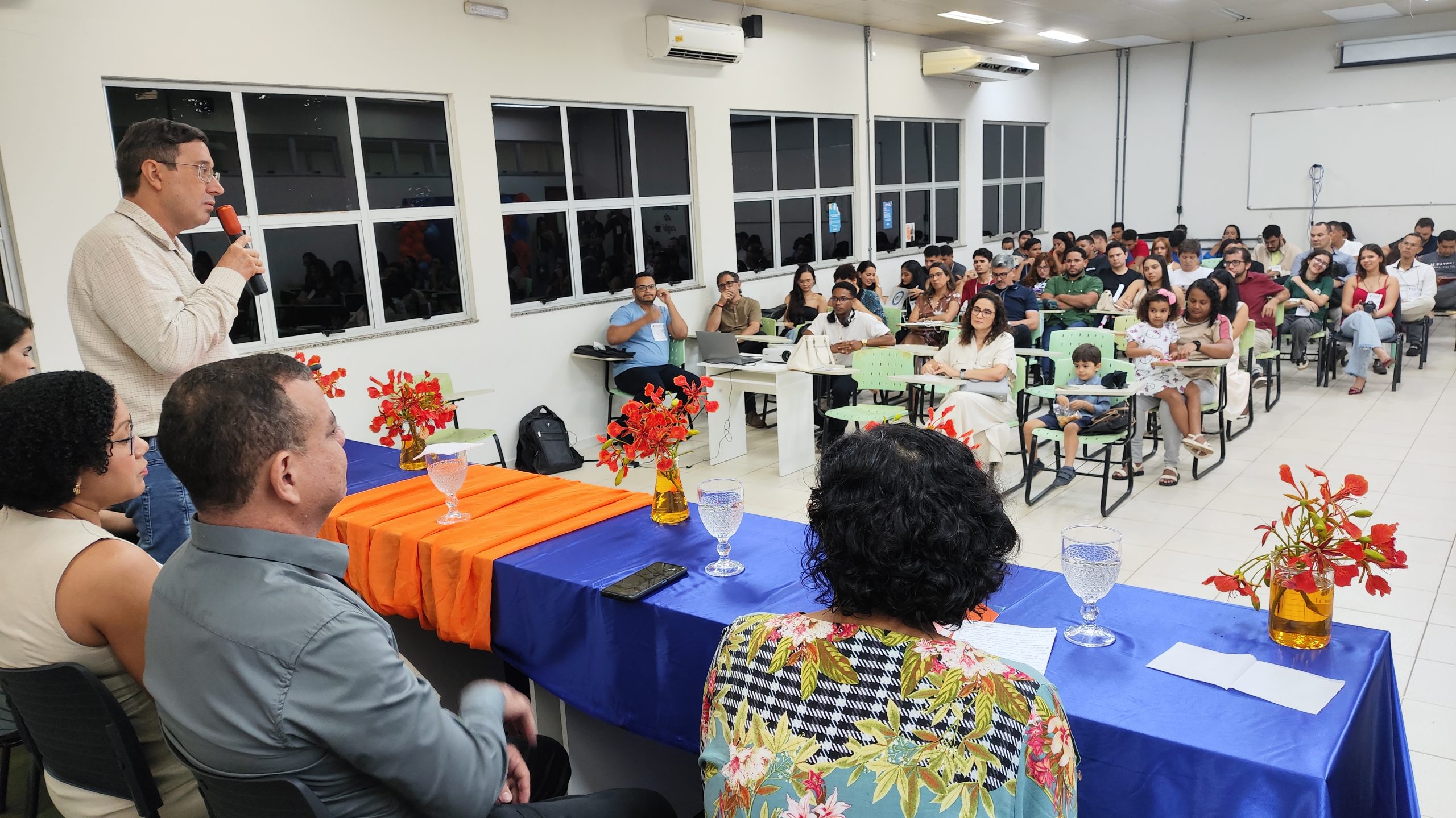 A cerimônia de abertura contou com a presença de autoridades acadêmicas, entre elas o pró-reitor de Graduação, professor Braz Batista Vaz, o diretor do CCI, professor Roberto Antero, a vice-coordenadora do curso, professora Flamys Lena, a coordenadora geral do evento, professora Verenna Barbosa, e a vice-presidente do Centro Acadêmico, professora Lucileuza Sobreira.