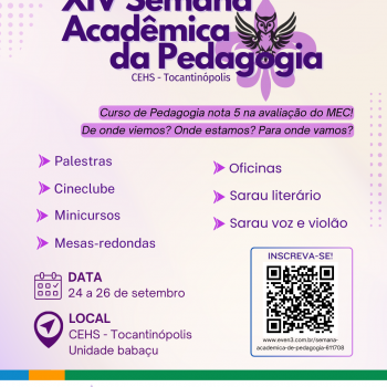 A XIV Semana Acadêmica do Curso de Pedagogia do Centro de Educação Humanidades e Saúde (CEHS) da Universidade Federal do Norte do Tocantins (UFNT), em Tocantinópolis, é um importante momento de reflexão sobre a trajetória do curso que, ao longo de seus 34 anos, já formou mais de mil e duzentos pedagogos que atuam em